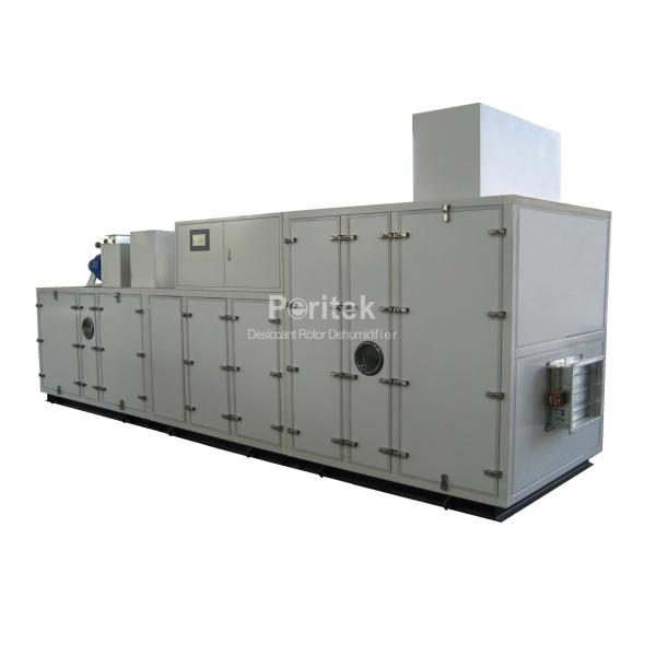 The core component of rotary dehumidifier is the 8-16 hour spin in turn densely cellular Conde desiccant wheel. The desiccant wheel on both sides by high-performance silicon fluorine rubber seals along the entire surface of the radial will be divided into 270 ° of the treatment area and 90 ° of the regeneration zone, when the moist air comes into the processing area, the air moisture in the desiccant wheel was adsorbed into dry air, dry air meet the need of dry place or gas production process